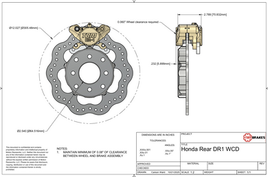 1992-2001 Honda/Acura GSR Drag Racing Rear Brake Kit is extremely lightweight and designed to fit most 13in beadlock wheels. Check fitment drawing below.