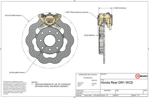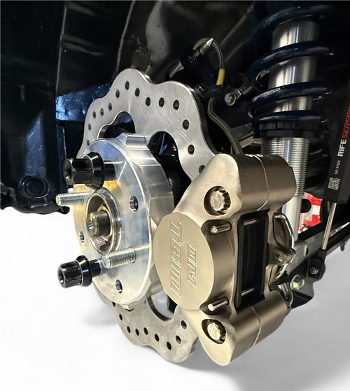 *NOTE* Caliper overhangs rotor hat by .232". When running Beadlock rear wheels make sure you have a minimum of .060" clearance to the caliper. Depending on the brand of wheel you may need to trim bolts (protruding) that holds the face of the wheel on.