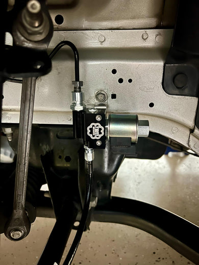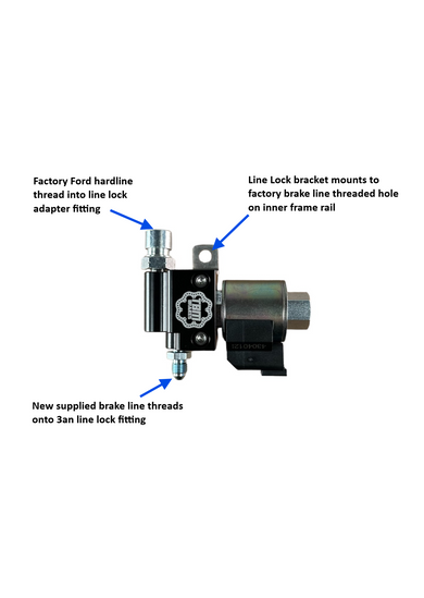 This bolt on dual line lock kit is an easy to plumb and mount kit for your 2015 to 2024 Mustang. This dual line lock kit allows you to attach the factory front brake hardline directly to the TBM line lock with the supplied adapters and brackets. The included brake line is designed to connect directly to your TBM F3, XS3, or Stock calipers.