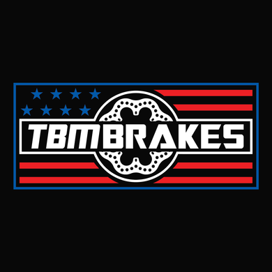 Front of shirt is the TBM revolution rotor logo in white/red on the breast pocket. Rear features the TBM Brakes Stars and Stripes design.