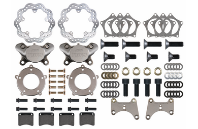 TBM 2 Piston (F1/DR-1) Front Drag Racing Brake Kits are extremely lightweight and are not suitable for use with factory rear brakes/proportioning. They must be used with a properly installed aftermarket-style 4 piston rear brake kit. We do not recommend 2 piston front brakes for drag vehicles that are over 3400 lbs